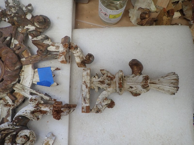Restitution d’une dorure à la mixtion avec patine et cirage à la ciremicrocristaline