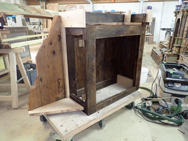 Récupération du retable déposé en urgence et entreposé en caisse à cause de son état de péril important